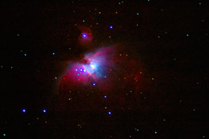 Over: Oriontåka M42 (NGC 1976)sett fra hagen på Vassøy, 26 desember 2005.