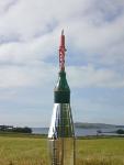 Liten bærerakett med to glidefly som løses ut i høyden for så å glidefly mot bakken. |