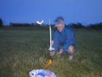 Egenutviklet "sølvpil" som gikk relativt høyt (anslagsvis 200 meter). I skumringsmørket begynte det å bli vanskelig å finne igjen delene og overhodet se den mot kveldshimmelen. Det var ingen som kunne si sikkert hvor den ville lande... |